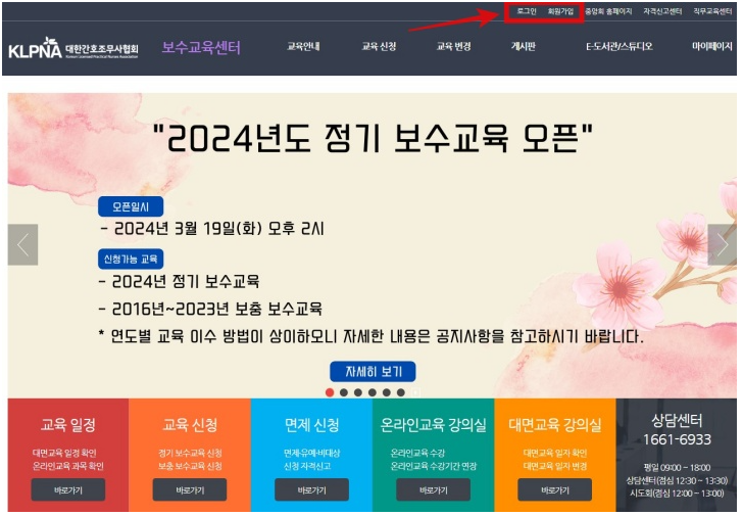 3. 대한간호조무사협회 보수교육센터로 바로 이동합니다.