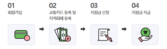 ① 신규회원 : 회원가입 ▶ 교통카드등록 ▶ 지역화폐 등록 ▶ 신청
