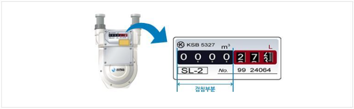 - 사용량은 가스계량기의 왼쪽부분 아래의 이미지에서 검침 부분을 확인하시면 되며, 신축 아파트의 경우에는 거실의 월패드에서도 확인이 가능합니다.