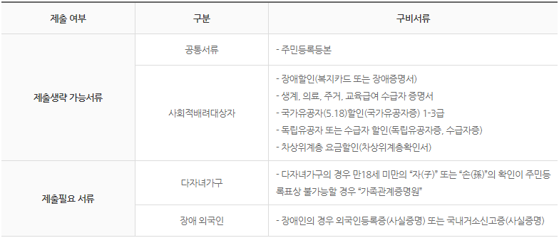 - 국가유공자 및 수급자, 장애인, 차상위 계층, 다자녀 가구 등 사회적인 배려가 필요한 많은 분들이 할인을 받을 수 있으니 확인해보시기 바랍니다.