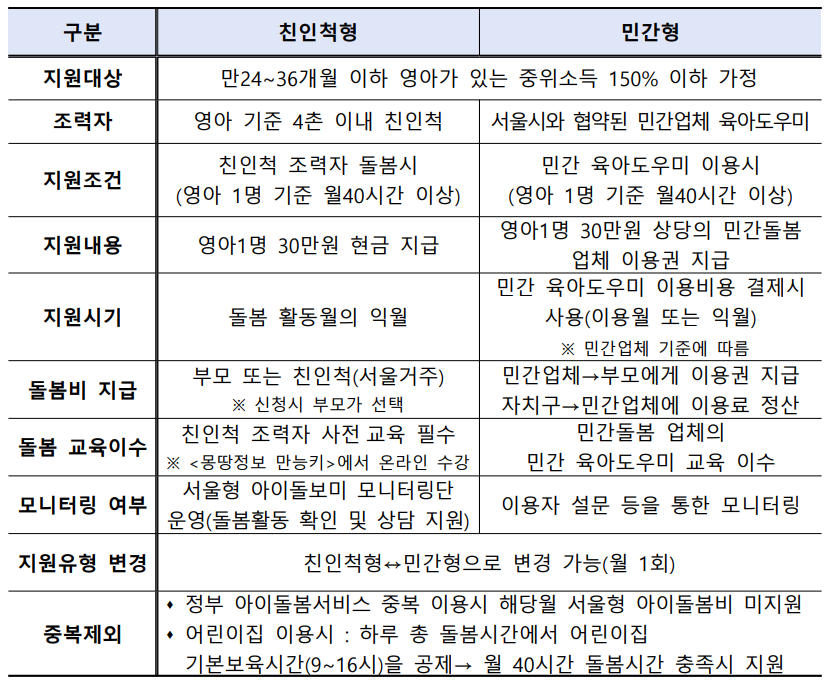 - 서울 거주 만 24개월 ~ 36개월 영아가 있는 가정 중 양육공백이 발생한 가정