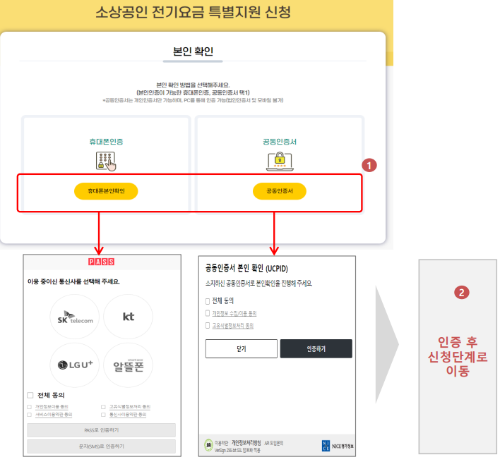 - 지원방식 : 사업자용 전기사용 여부, 요금 납부를 확인할 수 있는 서류 등을 별도로 검증해 전기요금을 최대 20만 원 차감하는 방식