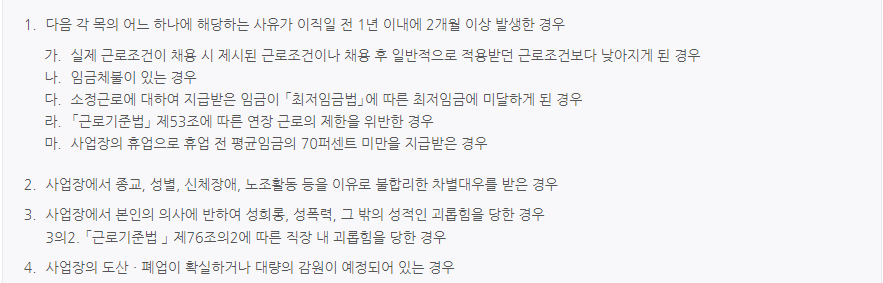 4. 이직사유가 비자발적인 사유일 것(이작 사유가 법 제58조에 따른 수급자격의 제한사유에 해당하지 아니할 것)