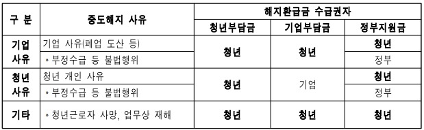 중도해지 사유는 실시기업 또는 청년 사유로 인해 발생할 수 있습니다.