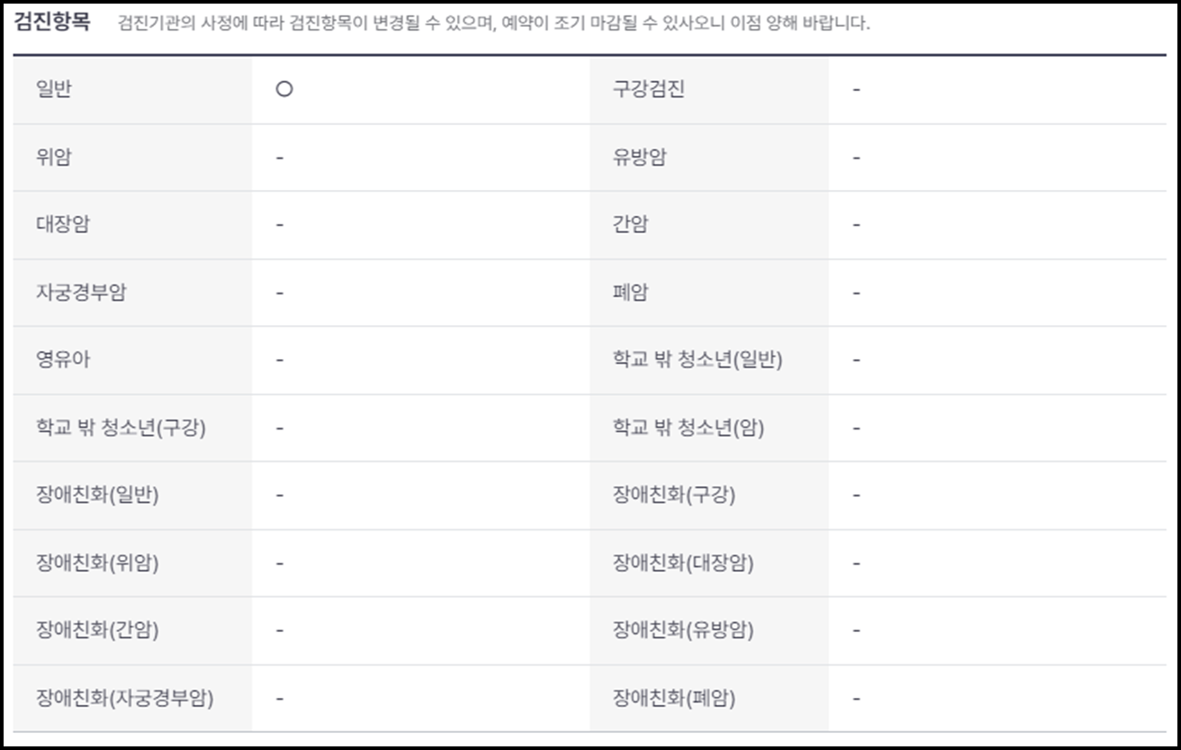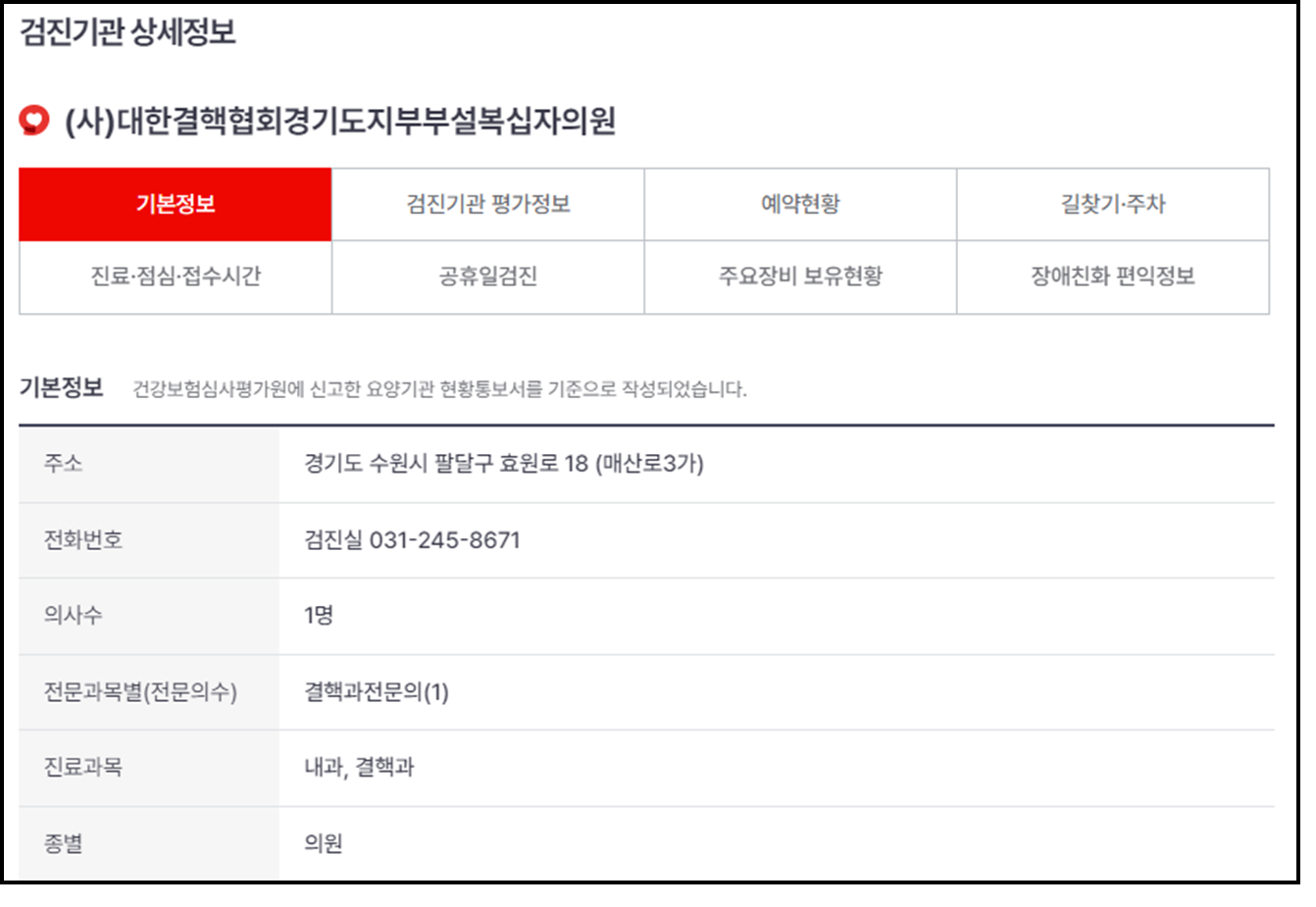 ⑥ 검진항목까지 확인한 뒤, 본인이 검진해야 할 항목이 검진이 가능하면 전화를 걸어 예약을 완료합니다.