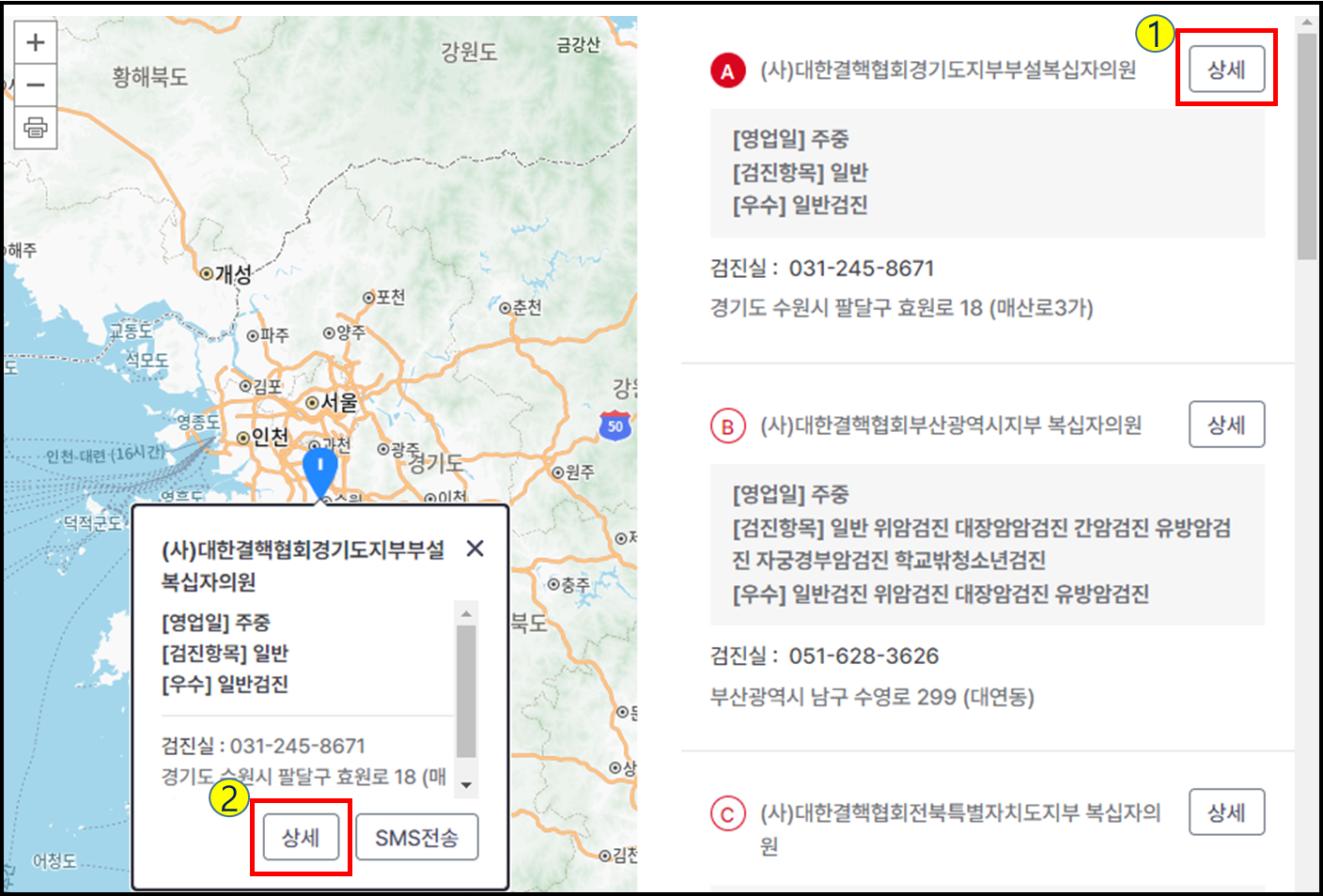 ③ 검색된 기관에서 [상세]를 클릭합니다.