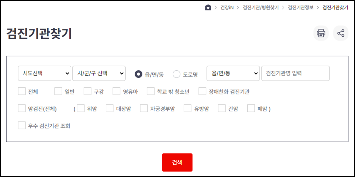 ② [검진기관찾기]에서 본인이 방문하기 편리한 곳을 선택하여 검색합니다.