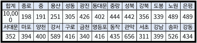 ● 자치구별 모집인원
